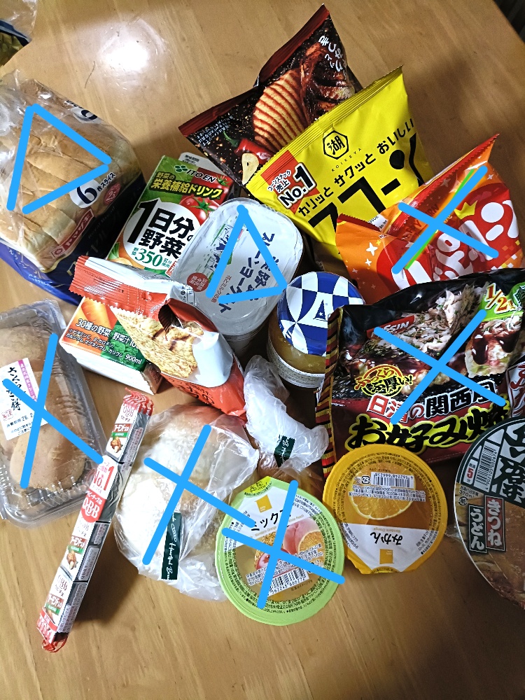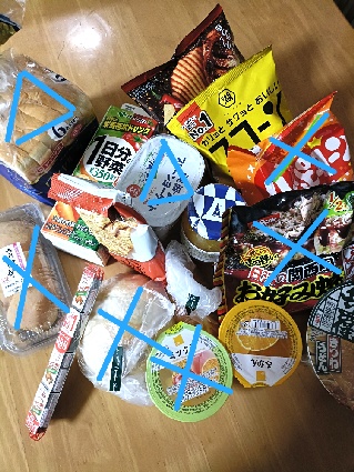 (✕は完食したやつ、△は一部食べたやつ)