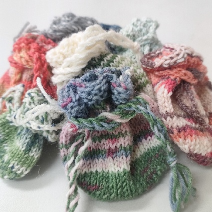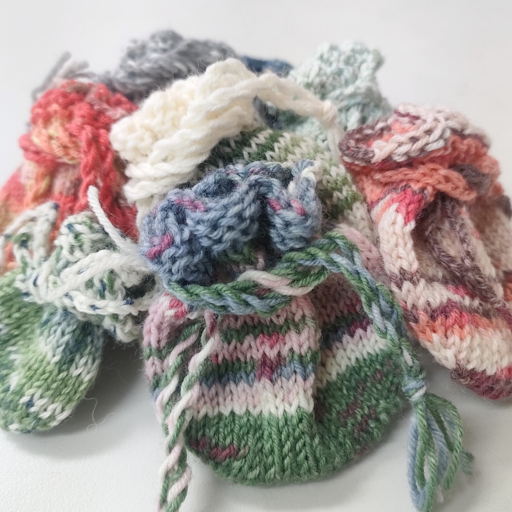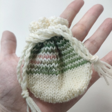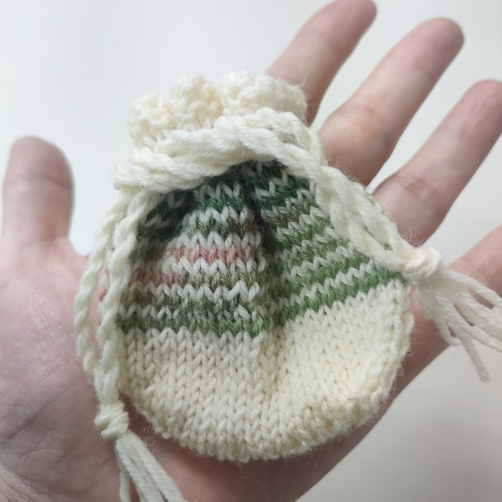 ソックヤーンの余り糸でミニミニ巾着を作ってみました😄😄小さめの私の手のひらにも乗るくらいのミニサイズ。アクセサリーポーチくらいかな。底が丸い形のペタンコ巾着です。ほんとの余り糸でできるし、なんなら余り糸同士を組み合わせてもいいし、無地っぽい糸なら少し模様編みを入れてもいい😊慣れると一時間足らずで編めるので量産できてとっても楽しいです💕大体6〜7gくらいでできますよ〜作ってみたい人いるかな?