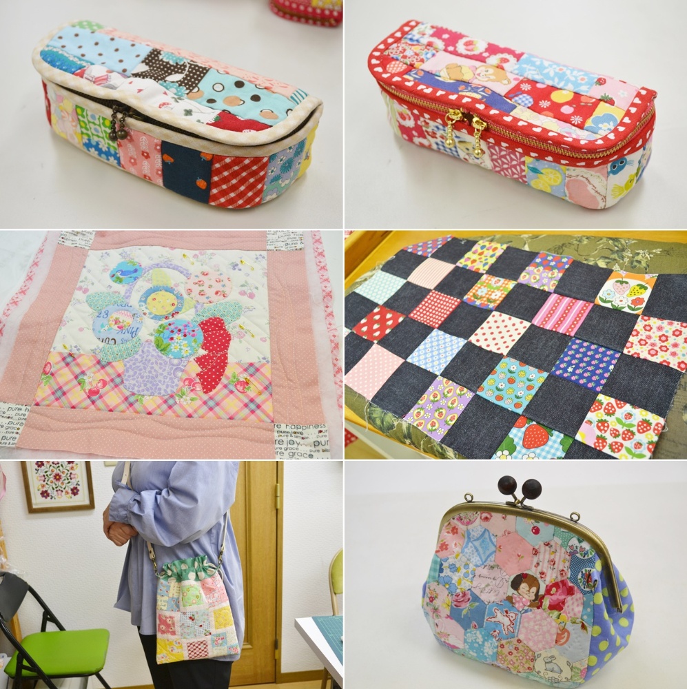 今日のレッスンは賑やかだったけどみなさんちゃんと手も動かして(笑)完成品もたくさん見れました~今日のレッスン画像☆B・Yさんのスクラップバニティポーチ☆K・Cさんのスクラップバニティポーチ☆Y・Sさんのアップリケタペストリー(ミシンキルト本科)☆B・Yさんの四角つなぎのバッグ製作途中☆H・Hさんの巾着ショルダーバッグ☆K・Cさんのヘキサゴンがま口ポシェット