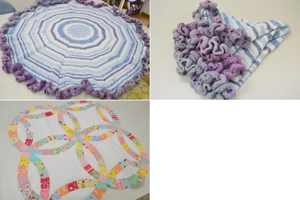 急に寒くなりましたね。(昨日のうちにお出かけできてよかった^^)今日は編み物レッスン多めの一日~♪偶然にもうちの生徒さん同士が職場が同じになった事件(!?)などで盛り上がり(笑)楽しい一日となりました。そんな偶然もあるんだ!と私もビックリです\(◎o◎)/!今日のレッスン画像☆Y・Sさんのフリフリサークルブランケット☆I・Yさんのダブルウェディングリング